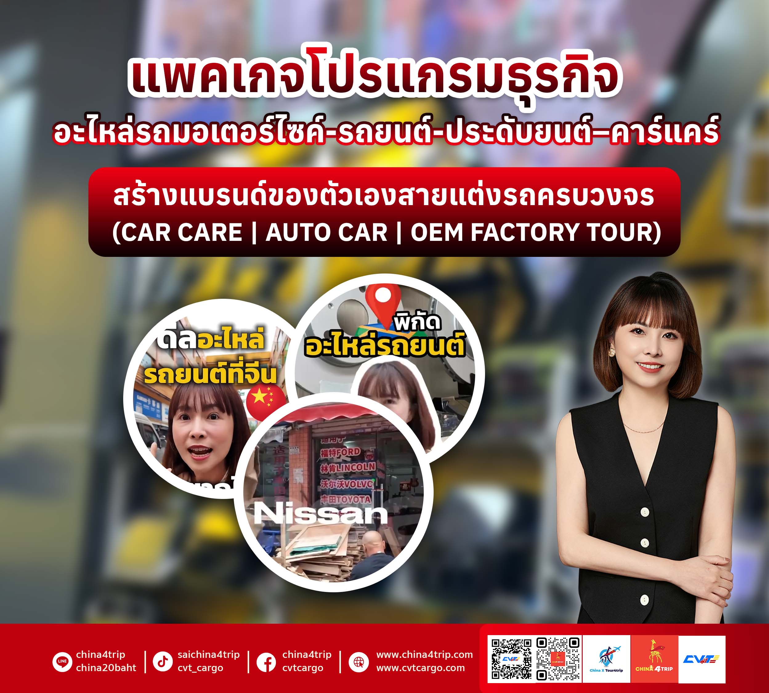 แพคเกจโปรแกรมธุรกิจ “อะไหล่รถมอเตอร์ไซค์-รถยนต์-ประดับยนต์–คาร์แคร์” | สร้างแบรนด์ของตัวเองสายแต่งรถครบวงจร (CAR CARE | AUTO CAR | OEM FACTORY TOUR)